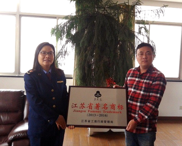 2014.4.11新港工商所所長(zhǎng)倪偉敏—行來到我司,向我司送來“江蘇省有名商標(biāo)”證書和牌匾,她勉勵(lì)我司再接再厲,再創(chuàng)佳績(jī),總經(jīng)理助理姚峰接受了牌匾。