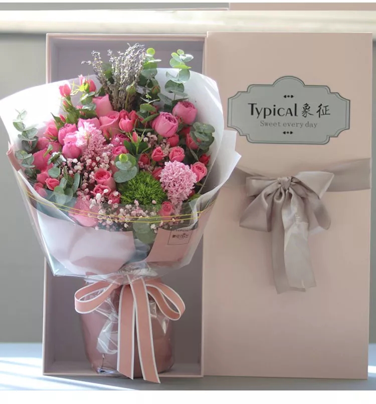 —束匠心獨運的鮮花,可以為您隱含許多美好的寓意。多頭康乃馨象征著純潔的愛;紫色郁金香意味著紫氣東來;送玫瑰可以選擇紅色與紫色的搭配,意味著美好生活。